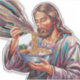 This creative artwork combines the divine with a love for ramen, making it a standout design for food lovers and those who appreciate unique, artistic humor. Perfect for adding a bold statement to your collection.