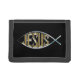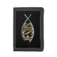 The words Jesus in gold within a fish symbol. frontiernow.com