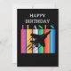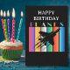 Celebrate a special birthday with this fun Aviation themed Birthday card. Featuring a cool black silhouette of a jet fighter airplane flying across a colorful gradient rainbow backdrop, adding energy and excitement to the birthday wishes. Write a custom birthday greeting on the back that reminds them of the thrill of flight. Add this card with a present to give to a husband, boyfriend, brother. Great for a pilot. flight instructor, and airplane lover.