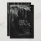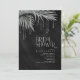 Opt for an Old Hollywood glam look by using the pieces in this wedding suite as shown, with jewels cascading off the diamond-encrusted palm leaves or delete the jewel layers for a slightly more conservative look. This set features leaves in shimmering silver against a dark charcoal, textured background. The bridal shower invitation shown here has a corner border of sparkling leaves, and an elegant Serif font to add to the romance. Easily enter your event details using the provided template. View the collection link on this page to see all of the matching items in this beautiful set or search ID830 to see additional color options for this design.