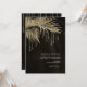 Opt for an Old Hollywood glam look by using the pieces in this wedding suite as shown, with jewels cascading off the diamond-encrusted palm leaves, or delete the jewel layers for a slightly more conservative look. This set features leaves in shimmering gold against a textured background the rich color of black coffee. The wedding invitation shown here has a corner border of sparkling leaves, and an elegant Serif font to add to the romance. Easily enter your wedding details using the provided template. View the collection link on this page to see all of the matching items in this beautiful set or search ID830 to see additional color options for this design.