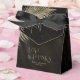 Opt for an Old Hollywood glam look by using the pieces in this wedding suite as shown, with jewels cascading off the diamond-encrusted palm leaves, or delete the jewel layers for a slightly more conservative look. This set features leaves in shimmering gold against a textured background the rich color of black coffee. The wedding 'Love & Thanks' favor box shown here has a border of sparkling leaves, an elegant Serif font with the bride and groom's name and wedding date. Easily enter your own wedding details using the provided template. View the collection link on this page to see all of the matching items in this beautiful set or search ID830 to see additional color options for this design.