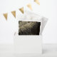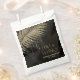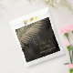 Opt for a striking, glitz and glam look by using the pieces in this wedding suite as shown, with jewels cascading off the diamond-encrusted palm leaves or delete the jewel layers for a slightly more conservative look. This set features leaves in shimmering gold against a textured background the rich color of black coffee. The wedding 'Love & Thanks' favor bag shown here has a border of sparkling leaves, an elegant Serif font with the bride and groom's name and wedding date. Easily enter your own wedding details using the provided template. View the collection link on this page to see all of the matching items in this beautiful set or search ID830 to see additional color options for this design.