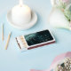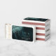 Opt for a striking, glitz and glam look by using the pieces in this wedding suite as shown, with jewels cascading off the diamond-encrusted palm leaves or delete the jewel layers for a slightly more conservative look. This set features leaves in shimmering pastel teal against a darker teal, textured background. The wedding 'Love & Thanks' favor matchbox shown here has a border of sparkling leaves, an elegant Serif font with the bride and groom's name and wedding date. Easily enter your own wedding details using the provided template. View the collection link on this page to see all of the matching items in this beautiful set or search ID830 to see additional color options for this design.