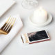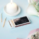Opt for a striking, glitz and glam look by using the pieces in this wedding suite as shown, with jewels cascading off the diamond-encrusted palm leaves or delete the jewel layers for a slightly more conservative look. This set features leaves in shimmering rose gold against a dark navy blue, textured background. The wedding 'Love & Thanks' favor matchbox shown here has a border of sparkling leaves, an elegant Serif font with the bride and groom's name and wedding date. Easily enter your own wedding details using the provided template. View the collection link on this page to see all of the matching items in this beautiful set or search ID830 to see additional color options for this design.