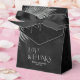 Opt for an Old Hollywood glam look by using the pieces in this wedding suite as shown, with jewels cascading off the diamond-encrusted palm leaves or delete the jewel layers for a slightly more conservative look. This set features leaves in shimmering silver against a dark charcoal, textured background. The wedding 'Love & Thanks' favor box shown here has a border of sparkling leaves, an elegant Serif font with the bride and groom's name and wedding date. Easily enter your own wedding details using the provided template. View the collection link on this page to see all of the matching items in this beautiful set or search ID830 to see additional color options for this design.