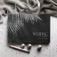 Opt for an Old Hollywood glam look by using the pieces in this wedding suite as shown, with jewels cascading off the diamond-encrusted palm leaves or delete the jewel layers for a slightly more conservative look. This set features leaves in shimmering silver against a dark charcoal, textured background. The wedding guest book shown here has a corner border of sparkling leaves with the bride and groom's names and wedding date. Easily enter your details using the provided template. View the collection link on this page to see all of the matching items in this beautiful set or search ID830 to see additional color options for this design.