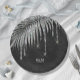 Opt for an Old Hollywood glam look by using the pieces in this wedding suite as shown, with jewels cascading off the diamond-encrusted palm leaves or delete the jewel layers for a slightly more conservative look. This set features leaves in shimmering silver against a dark charcoal, textured background. The wedding paper plate shown here has an upper border of sparkling leaves with the bride and groom's initials and wedding date. Easily enter your details using the provided template. View the collection link on this page to see all of the matching items in this beautiful set or search ID830 to see additional color options for this design.
