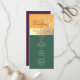 Elegant, modern, jewel tones, emerald green, yellow and plum purple wedding program, with gilded gold floral lace and simple calligraphy.