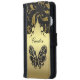 Elegant printed design in black and gold floral damask pattern with ornate border and gold tone body. Lovely printed Butterfly jewel accent in black and gold. Customize or delete name monogram text.