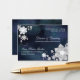 Sweet faux fabric flowers, lovely snowflakes and flourish swirls in white + rustic navy blue background designed on custom Wedding Reception Enclosure Cards. Elegant floral design wonderful for a BOHEMIAN STYLE WINTER WEDDING | FROSTY CHRISTMAS WEDDING | NAVY BLUE & WHITE COLOR SCHEME WEDDING or FESTIVE WINTER WONDERLAND WEDDING. ((You can find the matching wedding essentials & favors in this store, Bridal Heaven. Contact ujean4791@gmail.com for custom work and/or coordinating wedding stationery.))