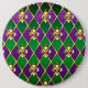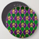 jewelry, background on Mardi Gras of purple and green rhombus, decorated gold lilies.