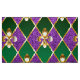 jewelry, background on Mardi Gras of purple and green rhombus, decorated gold lilies.
