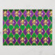 jewelry, background on Mardi Gras of purple and green rhombus, decorated gold lilies.