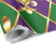 jewelry, background on Mardi Gras of purple and green rhombus, decorated gold lilies.