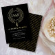 A sophisticated wedding invitation in gold foil that showcases concentric circles and initials set against a black backdrop. This contemporary invitation elegantly displays your initials in a stylish font, encompassed by a sculptural arrangement of concentric circles reminiscent of a wire choker. The design is further enhanced by a leaf accent positioned at the lower center. Adding a touch of refinement, the reverse side presents the couple's names in a diagonal pattern, rendered in gold on a black background.