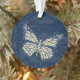 Patterns inspired by traditional Jewish mosaics and designs decorate the wings, body, and antennae of this monarch butterfly. "Peace" written in Aramaic script sits in the spots on the wings.