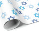 A classic design, this lovely Jewish theme wrapping paper is perfect for Hanukkah. Featuring different shades of blue Star of David patterns on a white background, place your order today!