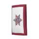 A simple nylon wallet that seems very durable. The design on front (Reiki) is very special. The red color of the wallet is attractive. Very satisfied with the print.