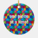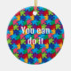 Jigsaw Puzzle Pieces Ceramic Ornament with customizable background color and text. Text reads: (side 1); You can do it; (side 2) one piece at a time. Take it literally or figuratively. Or change it to something else altogether!