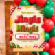 Holiday season is coming, invite your friends and family together with a fun and memorable open house Jingle and Mingle party. All elements in the Welcome sign were digitally drawn to match the special text effects on the title. Unique letter box was used on the host area for added spark on the design