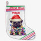 JINGLE BELLS" PUG" CHRISTMAS STOCKING WITH PERSONALIZED NAME.