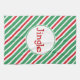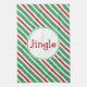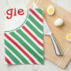 A festive red and green striped pattern decorates this holiday jingle kitchen towel. The design is from original art.