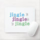 A unique and simple holiday design on holiday greeting cards, mousepads, holiday tote bags, T-shirts, and more with blue, green, and lavender text and snowflakes that reads "Jingle Jingle Jingle"!