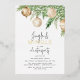 Designed to bring the festive spirit to any home, Jingle & Mingle’s Christmas Party Invitation is the perfect addition to this joyous season of celebrations. Featuring a snow white background, exquisite watercolor baubles in shades of cream and gold, contrasted against a lush evergreen pine tree, adorned with twinkling string lights, this visually stunning invitation is sure to amaze and impress even the most discerning of guests. With gold foil lettering.