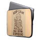This laptop bag reminds you to keep calm as you caffeinate and work. It reflects the reality that you are not on top of a mountain gazing out at a beautiful landscape while you meditate. You are working and drinking espresso! That's okay. Buddhist practice is to stay calm wherever you are regardless of what you are doing.
