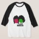 I bought the Men's Basic 3/4 Sleeve Raglan T-Shirt, White/Navy. It arrived on time for a gift and is of a great quality and fits perfectly! So cute! Zazzle has done it again! The printing was clear and filled in solidly.