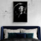 With her piercing gaze and enigmatic expression, Crawford embodies the essence of a femme fatale, the epitome of sophistication and mystery. The meticulously crafted black and white tones create a dramatic interplay of light and shadow, evoking the dark allure of film noir.