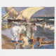Valencia Beach by Morning Light" is a captivating painting created by the renowned Spanish artist Joaquín Sorolla. The artwork beautifully captures the essence of a serene morning at the beach in Valencia, Spain. The painting depicts a wide expanse of sandy shore, bathed in soft, golden sunlight that gently illuminates the scene. The artist skillfully portrays the tranquil atmosphere by capturing the subtle play of light and shadow on the sand and water. The sparkling blue sea stretches out to the horizon, inviting viewers to immerse themselves in its refreshing beauty. The painting also showcases Sorolla's mastery of capturing the human form and activity. Figures dressed in light-colored clothing dot the beach, engaged in various leisurely activities such as strolling along the shore, enjoying the water, and basking in the sun. Sorolla's loose brushwork and vibrant palette bring life and movement to the scene, evoking a sense of warmth, joy, and relaxation. "Valencia Beach by Morning Light" is a testament to Sorolla's ability to capture the fleeting beauty of nature and the simple pleasures of everyday life, inviting viewers to escape into a moment of tranquility and coastal bliss.
