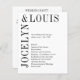 Modern wedding program featuring a minimalist black and white design with your names in a large font along the left side and top. This design is simple enough for a formal wedding yet makes a bold statement.