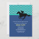 A sporty invitation that's perfect for a Kentucky Derby party or any horse-racing-related occasion. The card features a blue, green and white argyle pattern on top, a solid blue bottom and a silhouette jockey on a horse in black.