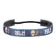 patriotic blue no slip headband with white stars scattered through the background, and a rep[eating pattern of red stars, a biden harris logo, anc a cartoon drawing of joe biden and kamala harris in sunglasses