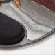 The plastic backing is nice and sturdy. The grippy pads underneath keep the mouse pad where I put it on my table. The pad the mouse sits on is cut well to fit the backing. The wrist pad is perfectly soft, supportive, and thick. I'm left-handed, and this mouse pad works just as well for me as it does for my right-handed friends. I'm the designer of HippieClecticHope products. I'm blown away by how well my intricate fractals turn out on the tangible items in the Zazzle Marketplace. This particular mouse pad ***appears*** like a 3D object... A mathematically-engineered rainbow black opal, inlaid under transparent fabric...