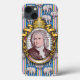 In the original artwork on this iPhone 13 Case, elephants represent the huge power of Johann Sebastian Bach’s compositions for pipe organ. On the case is a portrait of Bach in front of a score for one of his works, in an ornate golden frame on a wallpaper background of light blue, pink stripes and, of course, the elephants. This is a serious music lover’s case.