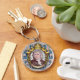 In the illustration on this keychain, elephants represent the huge power of Johan Sebastian Bach's compositions for pipe organ. On the keychain is a portrait of Bach in front of a score for one of his works, in an ornate golden frame on a wallpaper background of light blue, pink stripes and, of course, the elephants. This is the keychain for a classical music lover.
