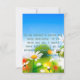 This greeting card features a fira code light print font with blue letters yellow outline showcasing the "John 14:2 KJV" bible scripture verse over a background picture displaying a springtime theme with white/yellow flowers plus green stems with a dim view under a beautiful clear blue sky. This verse is referencing the Book Of John 14th chapter showing the 2nd verse in this bible scripture quote theme from the King James bible with the words "With God You Can!" on the back. Made with high quality, full color printing on a 3.5" x 5" (portrait) or 5" x 3.5" (landscape) matte paper made and printed in the USA.
