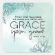 Inspirational quote scripture sticker depicts a floral design with simple hand drawn flowers on a blue and white abstract background. It features Bible Verse John 1:16, " From His fullness we have all received grace upon grace."_