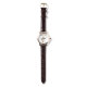 Has heft and feel of expensive stainless steel quartz watches. Good band with safety catch. I removed links, which is easy because engraved arrows show direction to push the linking pins. As always by this seller, the image (a railroad logo) is a perfect reproduction of my emailed image, and is precisely spaced and aligned.