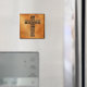 John 3:16 in the form of a cross is branded into a copper background for this familiar New Testament verse.