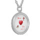 I chose gold plated so that the metal would not react with my skin oils and perspiration. But, I changed the necklace from the gold plated one to a sterling silver. My skin cells will tarnish the silver. But it will not look as bad if some portion of the gold plated necklace somehow became compromised. Zazzle did a find job turning the picture into a pendant for me. As you can see, the colors and the printing of the final product, match the preview. The picture I took is not very clear. But I am pleased with the product I received.