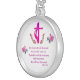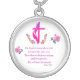 I chose gold plated so that the metal would not react with my skin oils and perspiration. But, I changed the necklace from the gold plated one to a sterling silver. My skin cells will tarnish the silver. But it will not look as bad if some portion of the gold plated necklace somehow became compromised. Zazzle did a find job turning the picture into a pendant for me. As you can see, the colors and the printing of the final product, match the preview. The picture I took is not very clear. But I am pleased with the product I received.