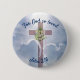 This pinback button shows your faith and what it is based on. It has a cross with lilies of the valley, in the clouds with a ray of sunshine. The upper text says "For God so loved" the lower text says "John 3:16" You can change the text if desired