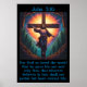John 3:16 For God so loved the world that he gave his one and only Son, that whoever believes in him shall not perish but have eternal life.On a poster with Jesus on the cross