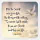 Inspirational scripture square sticker depicts a dove flying in the heavens. It features Bible Verse John 6:63, "It is the Spirit who gives Life; the flesh profits nothing. The words that I speak to you are Spirit, and they are Life."