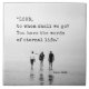 Inspirational quote scripture ceramic tile depicts a black and white photograph of three men walking on the ocean beach. It features a quote by Simon Peter answering Jesus from Bible Verse John 6:68, “LORD, to whom shall we go? You have the words of eternal life."