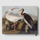 This illustration features the White Ibis (Eudocimus albus), showcasing both the elegant, all-white adult ibis and the beautifully mottled brown juvenile ibis with its characteristic long, curved bill. The detailed hand-colored engraving style is perfect for adding a touch of classic Americana and natural history to any room.